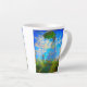 Une tasse en latte de portrait de famille avec Camille, la femme de Claude Monet, tenant un parasol, et leur fils Jean, se promenent dans un champ vert vif soufflé par le vent pendant une journée d’été. Un grand cadeau Monet pour les amateurs d'impressionnisme et d'art français.