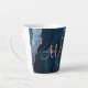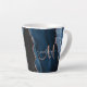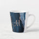 Tasse Latte Monogramme de script personnalisé Chic Blue Rose G