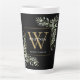 Tasse Latte Monogramme d'or noir Élégant vert moderne