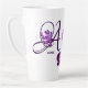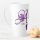 Tasse Latte monogramme fleuri pourpre Annie nom personnalisabl