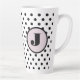 Cette tasse en latte présente un motif de points noirs sur un arrière - plan blanc avec un monogramme personnalisé encadré sur un arrière - plan rose pâle. Cliquez sur Personnaliser ce Modèle pour personnaliser facilement le monogramme et customiser plus loin les couleurs, la police et ajouter du texte, si vous le souhaitez.