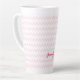 Personnalisé, personnalisé, élégant script de typographie rose foncé, cool moderne chic design géométrique tendance motif zig rose clair arrière - plan, céramique forte, micro-ondes et lave-vaisselle coffre-fort, tasse de café latte. Entrez simplement votre nom / nom de famille / nom du couple (mariée & mariée / mari & femme), pour customiser. Fabrique un grand cadeau pour mariage, anniversaire, remise des diplômes, fête des mères, noël, vacances, et plus encore, pour vos proches, enfants, maman, papa, femme, mari, petite amie, copain, grand-père, grand-mère, mariée, mariée, bonne d'honneur, groomsmen, jeunes mariés, mari et femme, bef, amis et famille.