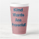 Kind Words est un message inspirant qu'il envoie ! Cette superbe tasse est faite dans un design simple ayant l'inspiration contre un arrière - plan rose! Le lettrage est fait en bleu ! Parfait pour un encouragement positif ; cela fera aussi un bateau sensationnel à boire !