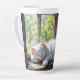 Tasse Latte Napping White Cat and Purple Flowers Personalized