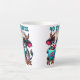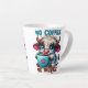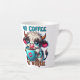 A funny and sarcastic design features a cute highland cow sitting with a steaming coffee mug that has a lipstick kiss mark on the front. The cow, with big blue eyes, glasses, and a soft expression, has black and white fur. Bright, colorful text reads: "No coffee, no workie." This playful design is available on various products, making perfect gifts for coffee lovers.
