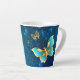 Tasse Latte Papillons d'or sur un Arrière - plan bleu