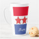 Placez votre table de vacances avec cette tasse de latte rouge et bleu 4 juillet patriotique festive. Cette tasse moderne du Jour de l'Indépendance présente un design moderne à rayures et étoiles. Achetez comme indiqué avec l'accueil de vacances ou personnalisez avec vos propres mots.