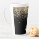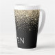 Parties scintillant à étincelles d'or et de noir Monogramme Nom de la tasse de café en latte. Cela rend le cadeau parfait pour 16 ans, mariage, douche nuptiale, anniversaire, baby shower ou bachelorette pour quelqu'un qui aime le luxe glam et les styles chic.