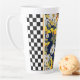 Belle image artistique présente des tonnes de marguerite colorée blanche camomille et des fleurs de pavot orange sur arrière - plan noir avec bordure en damier noir et blanc