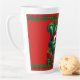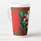 Une Mug En Latte Rouge Et Verte Pour Noël Conçu Dans Un Plaid Et Père Noël En Chaise Vérifiant Sa Liste