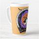 Pirate squelette chat Latte Mug : Ce design d'impression numérique présente une scène fantaisiste et spooktaculaire d'un chat squelette pirate, avec un patch oculaire et un casquette pirate, portant joyeusement un citrouille mousseux. La combinaison ludique d'un pirate félin et d'un citrouille d'Halloween crée une atmosphère délicieuse et un peu étrange. Un complément parfait à votre décor festif ou à ceux qui aiment une touche de surnaturel avec une touche d'humour.