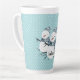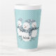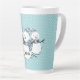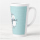 Un adorable trio d'hommes de neige fantaisistes motif sur un motif à pois bleu clair crée une tasse de latte festive pour tous. Personnaliser avec nom ou autre message personnalisé.