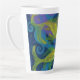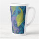Tasse en latte ornée d'une peinture colorée, trois poissons jaunes dorés dans l'eau bleue, violet, parfum turquoise et jaune et bulles. © Julia Khoroshikh www.juliakhoroshikh.art #nautical #underwaterartn #fish art #fish paint #pastelpaint #underwater #coffeemugs #zazzlemade