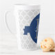 Profitez de votre café du matin ou du soir avec un bouchon de latte personnalisé Quatrefoil bleu. Mug design dispose d'un simple arrière - plan de quatrefoil et emblème fantaisie à personnaliser avec votre nom et monogramme. Autres cadeaux disponibles avec ce design ainsi qu'une variété de couleurs.