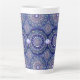Dessin d'un vitrail d'une ancienne église européenne : une fenêtre rose, avec des touches de couleurs variées, dont des tons bleus, sur un arrière - plan bleu marine. Inposition de strass bleus. Ce motif est également disponible en rouge cardinal dans mes collections "cardinal rouge rosace".