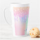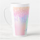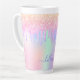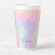 Un arrière - plan holographique branché aux couleurs pastel unicorne et arc-en-ciel rose, violet, vert menthe. Décoré avec des gouttes de rose et de violet. Personnalisez et ajoutez un nom, écrit avec un script de style à la main moderne avec des swashes. Lettres violettes. Pour que les swashes ne suppriment que le nom de l'échantillon, laissez les espaces ou émoticônes devant et après le nom. Un peu de glamour quotidien pour égayer votre journée !