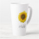 Tasse en latte de fleurs de tournesol moderne, avec typographie de script personnalisable sur un arrière - plan blanc. Avec le lettrage noir, vous pouvez personnaliser avec votre propre nom. Un joli article pour déguster votre latte ou boisson chaude préférée.