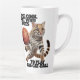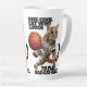 Comme des félins et du b-ball ? Vous allez adorer ce mashup ironique sur cette grande tasse en latte, qui montre un ocelot dégoulinant un ballon de basket, accompagné du slogan "Un chat Cool qui aime jouer au Bas-Cat-Ball." Reverse affiche un design identique. Design © W.H. Sim. Voir plus sur zazzle.com/word2art