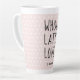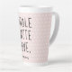 Célébrez l'amour et l'amitié avec cette tasse de latte de la Saint Valentin, avec le texte "Tout l'amour du latte" en script noir sur un arrière - plan rose pastel orné d'un joli petit motif de coeurs. Personnalisez ce cadeau sincère avec votre nom ! Conçu exclusivement pour vous par Happy Dolphin Studio.