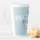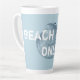 décoration du chalet de plage avec texte personnalisable "vibes de plage seulement" en police blanche en détresse, arrière - plan bleu et illustration de coquillage bleu vintage