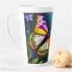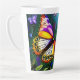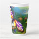 La tasse en latte artistique et colorée présente des oeuvres numériques assistées par l'IA qui mettent en valeur le voyage du papillon dans un monde d'imaginaire magique