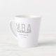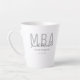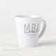 Une tasse de diplôme de MBA qui indique le nom du diplômé, le domaine d’études et la date de fin de l’obtention du diplôme. La tasse inclut le nom dans une police de script d'écriture manuscrite et la conception a un jeu de couleurs blanc, gris et noir. C’est un grand plaisir pour un gardien ou une fête. Ajoutez simplement les infos du diplômé, ajoutez cette tasse à votre panier, et félicitations pour cette étape majeure ! White Grey Nom MBA Gradué Latte Mug Conception de jour férié | ©Melissa Patton - Designer