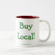 Cette tasse montre le logo de la ferme sainte de racine, d'un verger possédé par famille et du rucher sur un côté et un amusement "gens du pays d'achat !" déclaration de l'autre.
