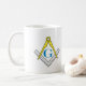 Voici une tasse intéressante et de base avec une conception polychrome de carré-et-boussole. Cet emblème est l'un des symboles les plus identifiés de la franc-maçonnerie. Montrez votre fierté en tant que membre en utilisant cette tasse colorée pour n'importe quelle boisson préférée !
