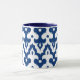 Motif damassé d'inspiration marocaine d'entrelacs de fleur de lis positif / négatif avec une texture rayée, Ikat tissée - profond cobalt bleu et blanc mug