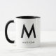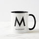 Cette tasse simple et moderne présente votre initiale et votre nom, en texte noir gras sur un arrière - plan noir.