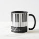 Piano Keyboard Design Mug avec texte personnalisable et couleur personnalisable dans la zone du clavier blanc.