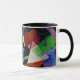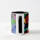 Rétro peinture abstraite semblante de beaux-arts de mod en acrylique qui se reproduit sur cette tasse comme si c'étaient une tapisserie parce que l'armure de la toile montre. Effet très intéressant. Une partie d'une série de peintures.