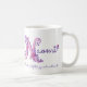 Tasse tirée par la main de nom et de signification de la lettre N. Le joli capital N de coeur et de fleur a gribouillé la conception typographique comportant des coeurs et des fleurs et les mots Naomi agréable, une joie délicieuse et une beauté douce dans le rose et le pourpre. Art et conception uniques de © de Sarah Trett. www.sarahtrett.com pour www.mylittleeden.com sur le zazzle