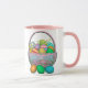 Tasse à café avec ma conception d'oeufs colorés peints de Pâques dans un joli panier avec une bannière qui dit "Bonne Pâques".
