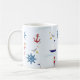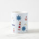 Cette tasse orientée nautique est belle et comporte des ancres, des bateaux, des mouettes, des phares et des boussoles.
