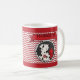 Cette tasse personnalisée de pompier a un Dalmate avec un emblème FD d'état du feu pour le corps de sapeurs-pompiers. Le cercle extérieur est dans la copie dalmatienne sur la copie rouge de chevron. Vous changez juste le nom à l'autre ou même d'autres mots. Fait un cadeau de souvenir de personne pour le pompier dans la maison.