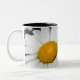 tasse Photographie d'une marguerite avec la rosée du matin, le font vert, imprimer sur un plateau. Le nom de la photographie est «... aime à la folie 2». C'est une photographie du Québec. Marie-Ève LaBadie photographe