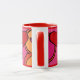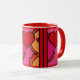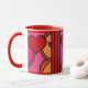 Quel Amusant ! Il y a juste quelque chose de si heureux et de si léger dans le design de cette grande tasse en céramique, qui rend impossible de ne pas sourire! L'oeuvre originale de Leslie Sigal Javorek est dans un style pop-art abstrait avec des coeurs rouge ketchup et des tons chauds et chauds de rose chaud, orange et noir contours contre porcelaine blanche vive.