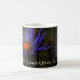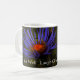 La fleur assez pourpre avec un coeur a senti le pays indiquer (vivent bien, le rire souvent, aiment beaucoup.) sur une tasse de café blanc.