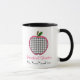Cette tasse pour des professeurs comporte une illustration d'une pomme grise de guingan avec l'équilibre rose. Le texte rose et noir peut être customisé. Tasse disponible dans d'autres couleurs et styles.