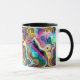 Le motif psychédélique lumineux fait une grande tasse colorée.
