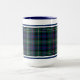 Tasse à café avec le tartan de chasse pour Clan Rose et ses septs, y compris Geddes. Motif écossais couleur vert foncé, bleu royal et noir de 1831, aux accents rouge et blanc éclatants.