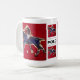 Cheval et joueur peints en céramique bleus de polo sur l'arrière - plan rouge. Tasse blanche. Art fait sur commande par StudioNancyAlcott.