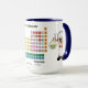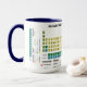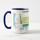 Scientifique avec des verres tenant un becher avec la table des éléments périodique sous la forme signalée de note.