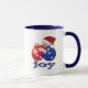 Un bébé de Noël habillé d'un casquette rouge joue sur quelques ornements de vacances et dit "Joie" sur des sacs fourre-tout personnalisables, des T-shirts et d'autres objets.
