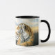 Illustration de l'Asie vintage d'un tigre au repos regardant le ciel du matin s'éclaircir.
