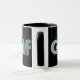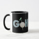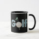 Tasse jouante au golf pour des amants de golf et des fans de sports. Logo de golf aux nuances molles du bleu sur le noir