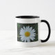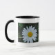 Eine grosse, weisse Margeritenblüte auf einem dünnen beigen Stäbchen, vor dunklem Hintergrund ist auf dieser Tasse, hier mit schwarzem Rand und Henkel. Die Farben für Rand und Henkel sind wählbar. Die Tasse ist dans verschiedenen Varianten erhältlich.