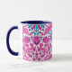Tasse à café dans un vintage William Morris motif de jacinthes, tulipes et feuilles, dans les tons fuchsia et rose doux, accentué de bleu foncé et turquoise, sur un arrière - plan blanc