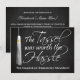 College graduation announcement invitation, with formal traditional classic wording and a fun theme. The tassel was worth the hassle. Fun and witty saying about all the hard work, sweat, determination, sacrifice and dedication that went into becoming a successful educational achiever. Dark black canvas style background with a white and gold tassel and cursive lettering. Personalized keepsake for the graduate.